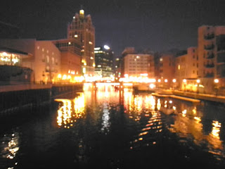 And this is the Milwaukee River, about a block away from the Hyatt Hotel (longer from the Hilton). One is a day shot looking North, the other a night shot looking South. They are both from the same bridge. I love how heavily travelled the river is, there are boats on it all the time when I'm there in the summer (I suspect it is much less well traveled in the winter though).