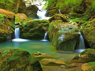 Yesterday I worked my poor NookColor to the max and how fun it was. I'm fairly desperate because just working with my Manager means that I'm stuck on the sales floor for the full day and can't duck back into my cubby to write a paragraph or even a sentence. But...I have an app for that - LOL. I have an app that allows me to access my Dropbox file, pull up a document, work on it and return it to the cloud. I got a lot of writing done on my Ardor in August piece yesterday via this method. Whenever I was tired of writing or stuck, I switched back to book mode and continued reading Casket of Souls which is as wonderful as I had hoped it would be, and NOT disappointing me at all. My Nano has Luck in the Shadows loaded and I have been listening to that while traveling. I'm enjoyed my immersion into reading/writing. (Since one of the scenes in my Ardor story has a forest stream, I am sharing some forest stream pics with all of you today.)